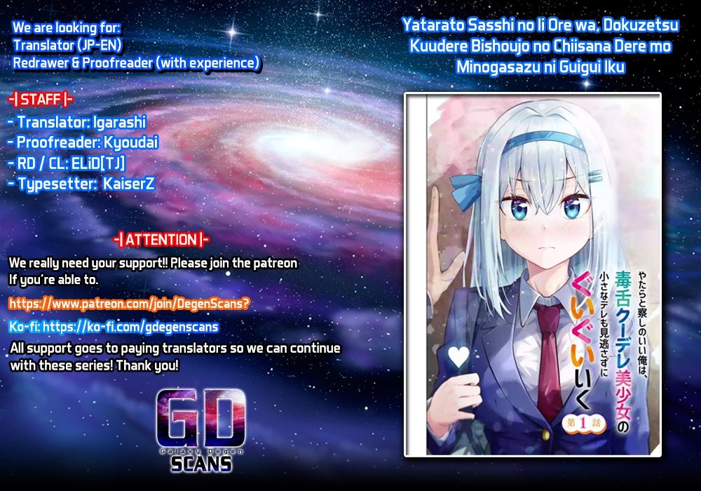 Yatarato Sasshi no Ii Ore wa, Dokuzetsu Kuudere Bishoujo no Chiisana Dere mo Minogasazu ni Guigui Iku